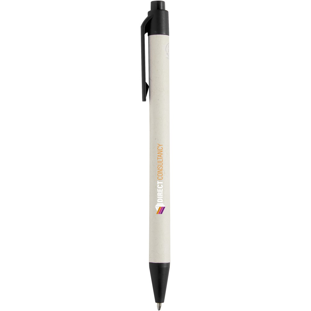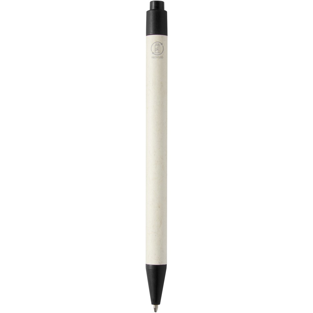 Click action golyóstoll újrahasznosított tejesdobozokból készült testtel (akár 70%). A gomb, a klipsz és a hegy PLA műanyagból készült. A használt tejesdobozokat összegyűjtik, válogatják, feldolgozzák és papírrá alakítják, így a hulladékból hasznos termékek készülnek.