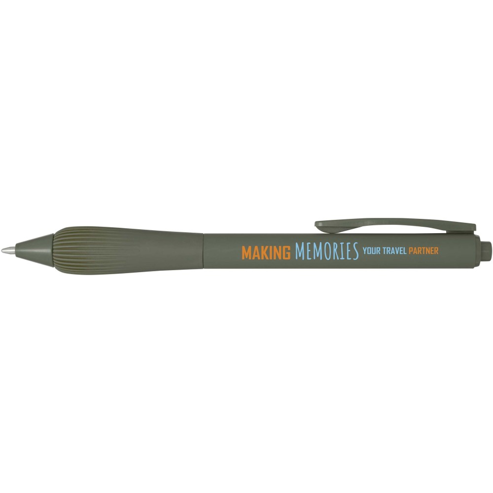 Újrahasznosított műanyag golyóstoll gumírozott tolltesttel és TPR anyagból készült fogórésszel. Fekete tollbetéttel. Írási hossz: 1000 méter. Hegyméret: 1,0 mm.