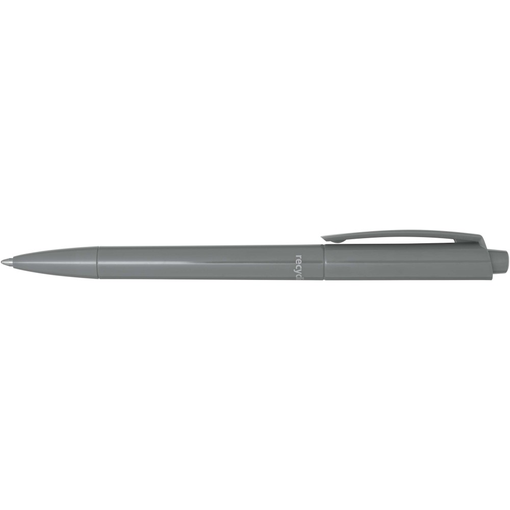 Golyóstoll, amelynek teste és klipsze újrahasznosított műanyagból, hegye pedig rozsdamentes acélból készült. Kék tollbetéttel. Íráshossz: 3000 méter. Hegyméret: 1,00 mm. Németországban készült.