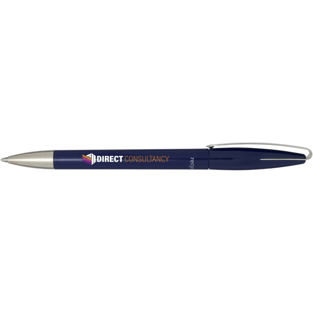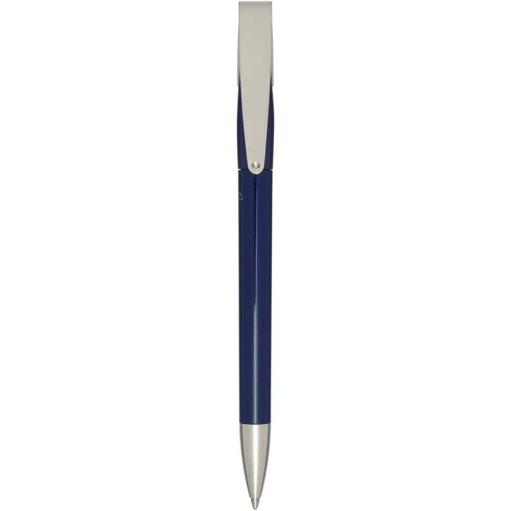 Golyóstoll, amelynek teste és klipsze újrahasznosított műanyagból, hegye pedig rozsdamentes acélból készült. Kék tollbetéttel. Íráshossz: 3000 méter. Hegyméret: 1,00 mm. Németországban készült.