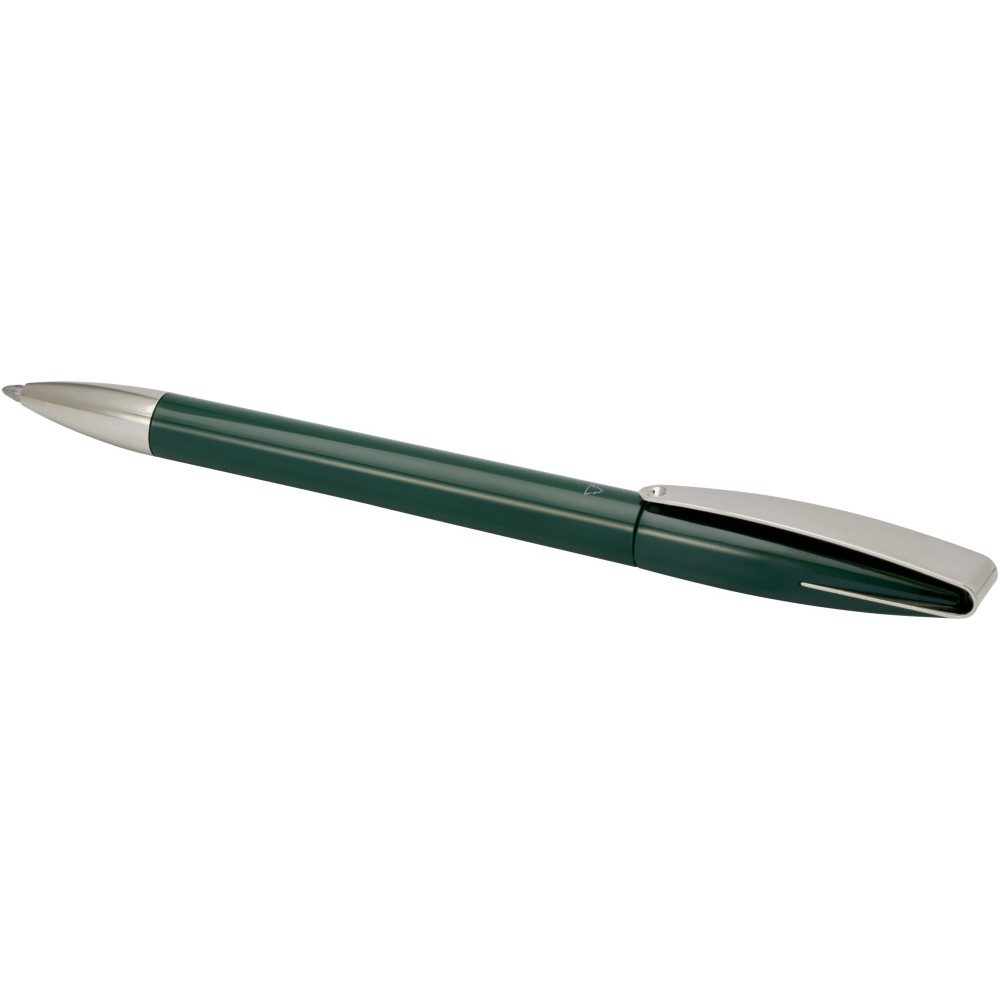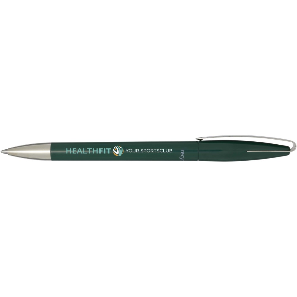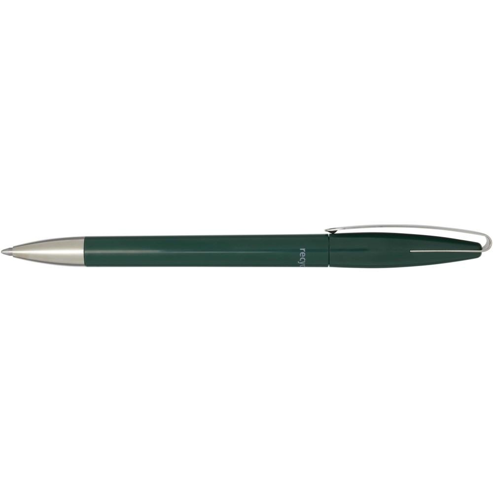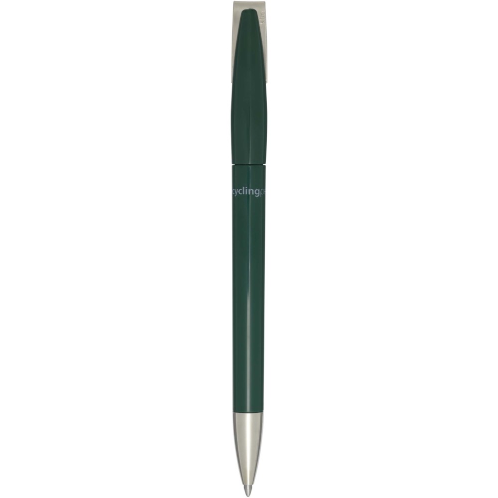 Golyóstoll, amelynek teste és klipsze újrahasznosított műanyagból, hegye pedig rozsdamentes acélból készült. Kék tollbetéttel. Íráshossz: 3000 méter. Hegyméret: 1,00 mm. Németországban készült.