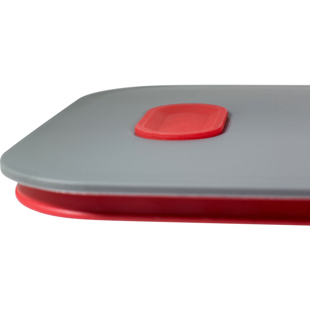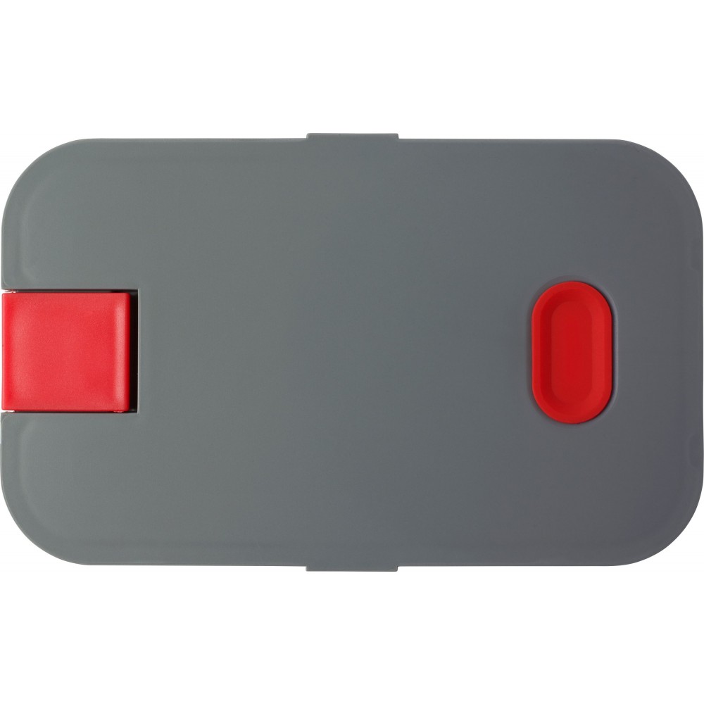 Ételdoboz egy belső elválasztóval. A fedélen lévő zárószerkezet telefontartóként is használható. Fedél nélkül mikrózható, csak a doboz. Űrtartalom: 850 ml. PP BPA-mentes műanyag.