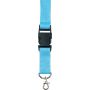 Nyakpánt cseppkarabinerrel és leoldható résszel. Késztermék, teljes felülete nem emblémázható. 300D poliészter.