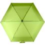 Összecsukható, automata esernyő (21 inch), hat panellel és acél vázzal. Az esernyő tépőzáras záródásán RPET címke található, műanyag karabineres fogantyúval, tokkal. Szélálló. Anyaga: RPET 190T.