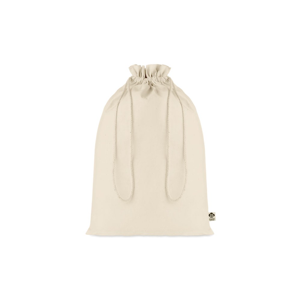 Nagy húzózsinóros ajándéktasak biopamutból. Méret kb. 30x47 cm. 105 g vastag anyag.