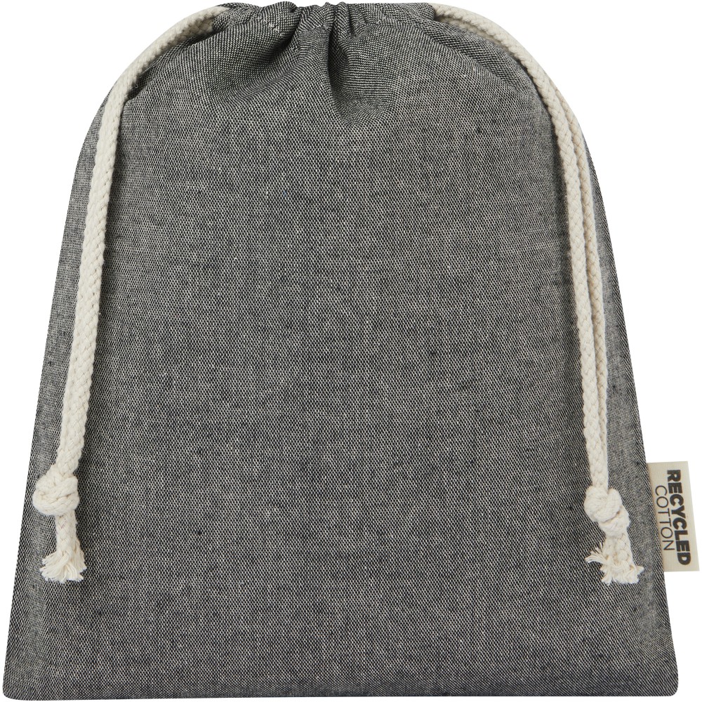 Ajándéktáska GRS tanúsítvánnyal rendelkező újrahasznosított pamutból, pamut húzózsinórral. Ideális ajándékok átadására, tárolására. Mérete: 25 x 30 cm.