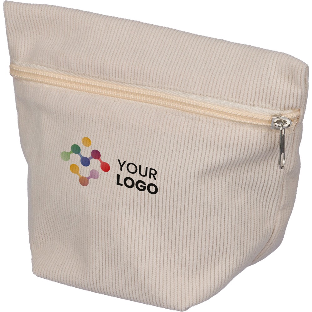 Kordbársony anyagból készült cipzáras kozmetikai táska egy fő rekesszel és biztonságos cipzáras zárással.