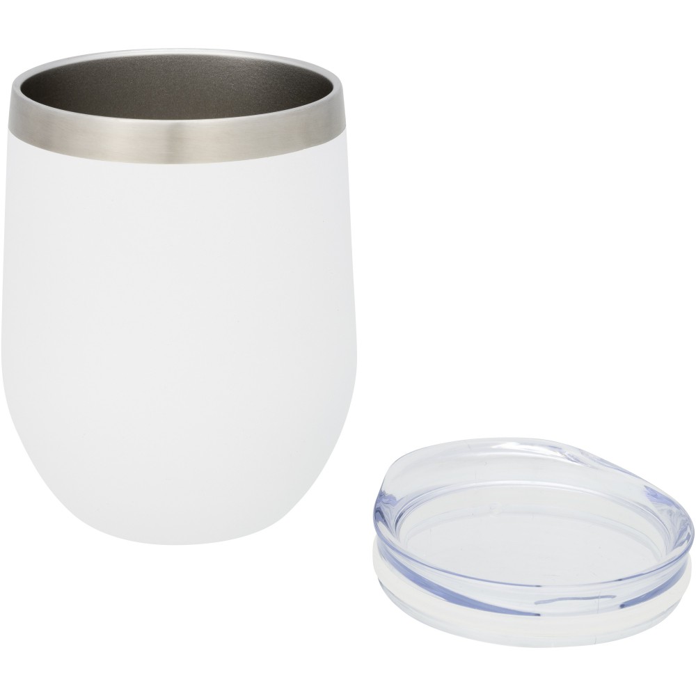 Rozsdamentes, rézbetétes szigetelésű, duplafalú vákumos pohár csavaros fedéllel. Kialakításának köszönhetően a páralecsapódás nem alakul ki. Hőtartóképesség 8 óra, hidegtartó képesség 24 óra. Nem szivárgásmentes. Szénsavas italokkal is használható. Mosogatógépben nem mosható és mikrohullámú sütőben történő melegítésre nem alkalmas. Űrtartalom: 350 ml. Csomagolása Avenue ajándékdoboz. Rozsdamentes acél.