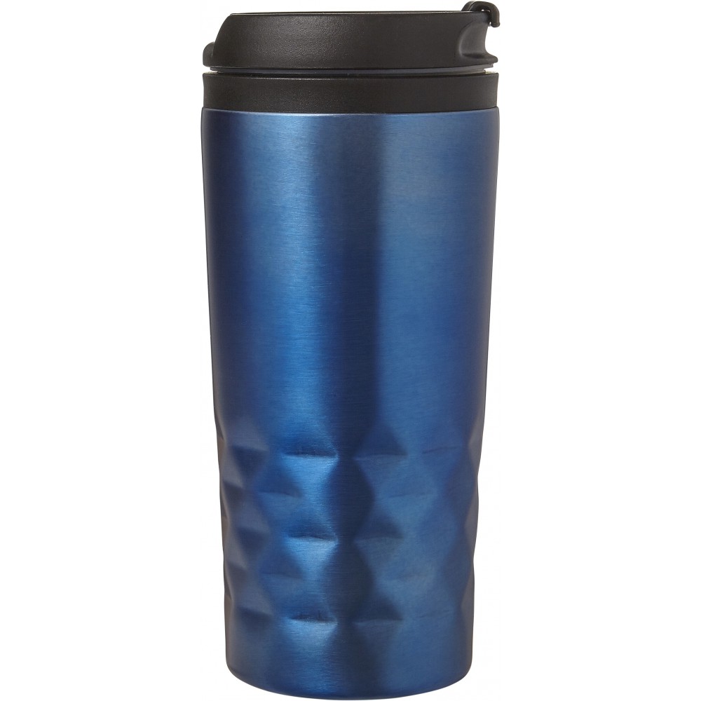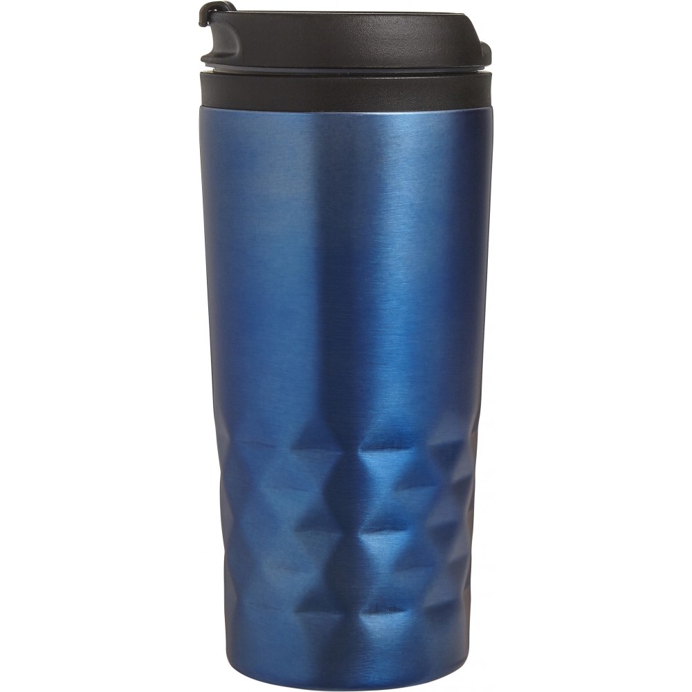 Duplafalú fedeles pohár. 300 ml. Rozsdamentes acél és BPA-mentes műanyag. Nem szivárgásmentes és nem mosogatógépálló termék.