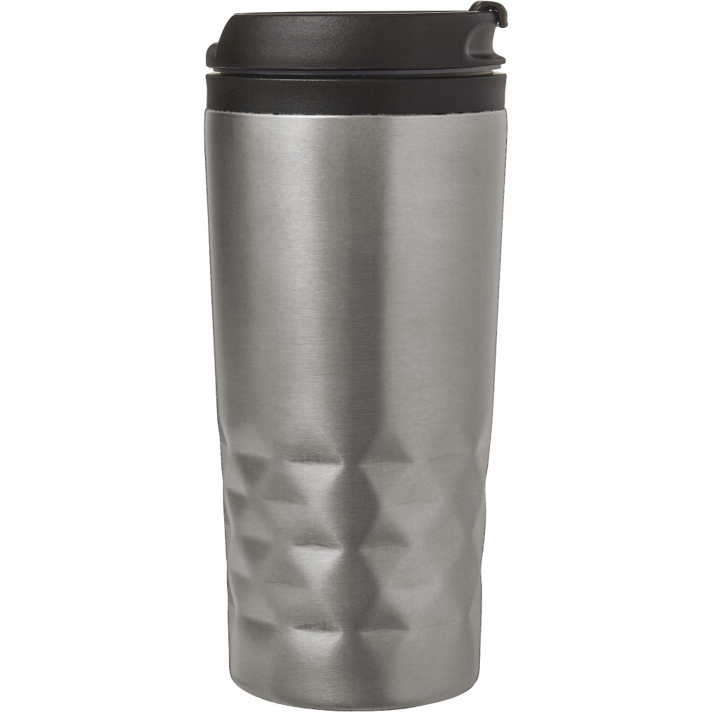 Duplafalú fedeles pohár. 300 ml. Rozsdamentes acél és BPA-mentes műanyag. Nem szivárgásmentes és nem mosogatógépálló termék.