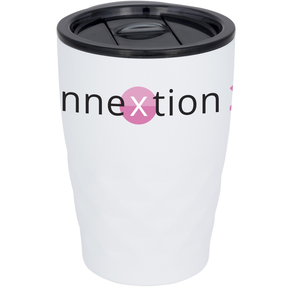 Duplafalú vákumos kialakítás réz szigeteléssel, ami biztosítja a 8 órás melegentartást és a 24 órás hidegentartást. Kialakításának köszönhetően külső párásodás nem fordul elő. A nyomógombos és tolórekeszes fedél kialakítása miatt könnyen fogyasztható belőle bármilyen ital. Könnyű újtatöltést és a kiöntés is biztosított a teljes nyithatóság. 350 ml űrtartalom. Nem szivárgásmentes. Szénsavas italokkal nem használható. Mosogatógépben nem mosható és mikrohullámú sütőben történő melegítésre nem alkalmas. Csomagolása Avenue ajándékdoboz.
