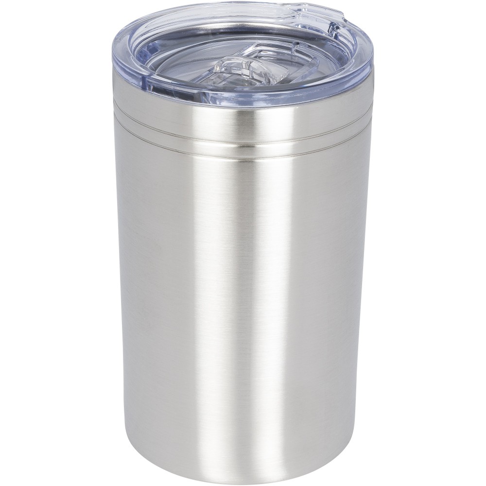 Duplafalas, vákuumos kialakítás. Nem szivárgásmentes. Szénsavas italokkal nem használható. Mosogatógépben nem mosható és mikrohullámú sütőben történő melegítésre nem alkalmas. Átlátszó, rápattintható kupak, elcsúsztatható záródással. Űrtartalom: 330 ml.