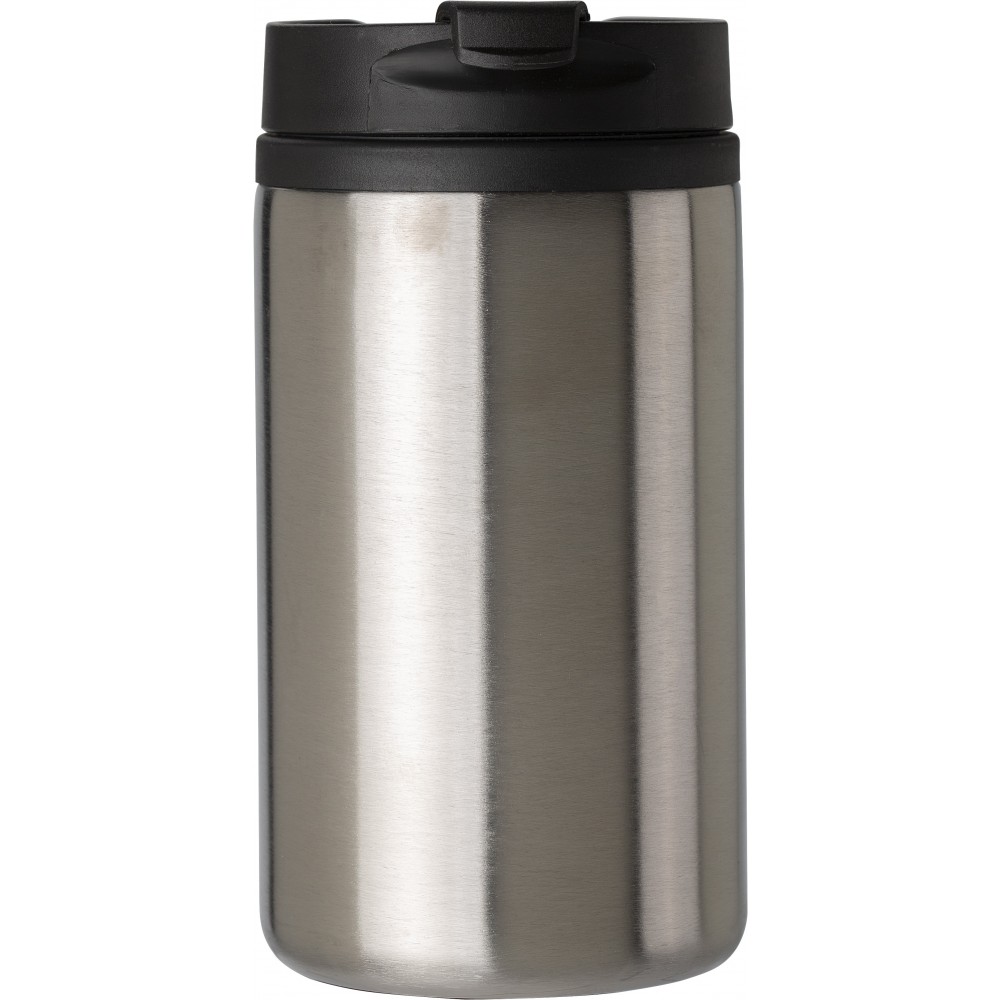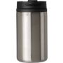 Duplafalú termoszpohár. A külső fal rozsdamentes acél, a belső fal műanyag. A csavaros fedél szivárgásmentes. A pohár alja csúszásgátlóval van ellátva. 300 ml. BPA-mentes műanyag. Nem mosogatógépálló termék.