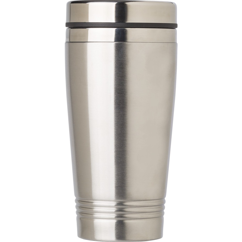 Rozsdamentes acél, duplafalú pohár fedéllel, csúszásmentes aljjal. Csomagolása barna kartondoboz. Űrtartalom: 450 ml.