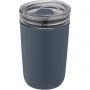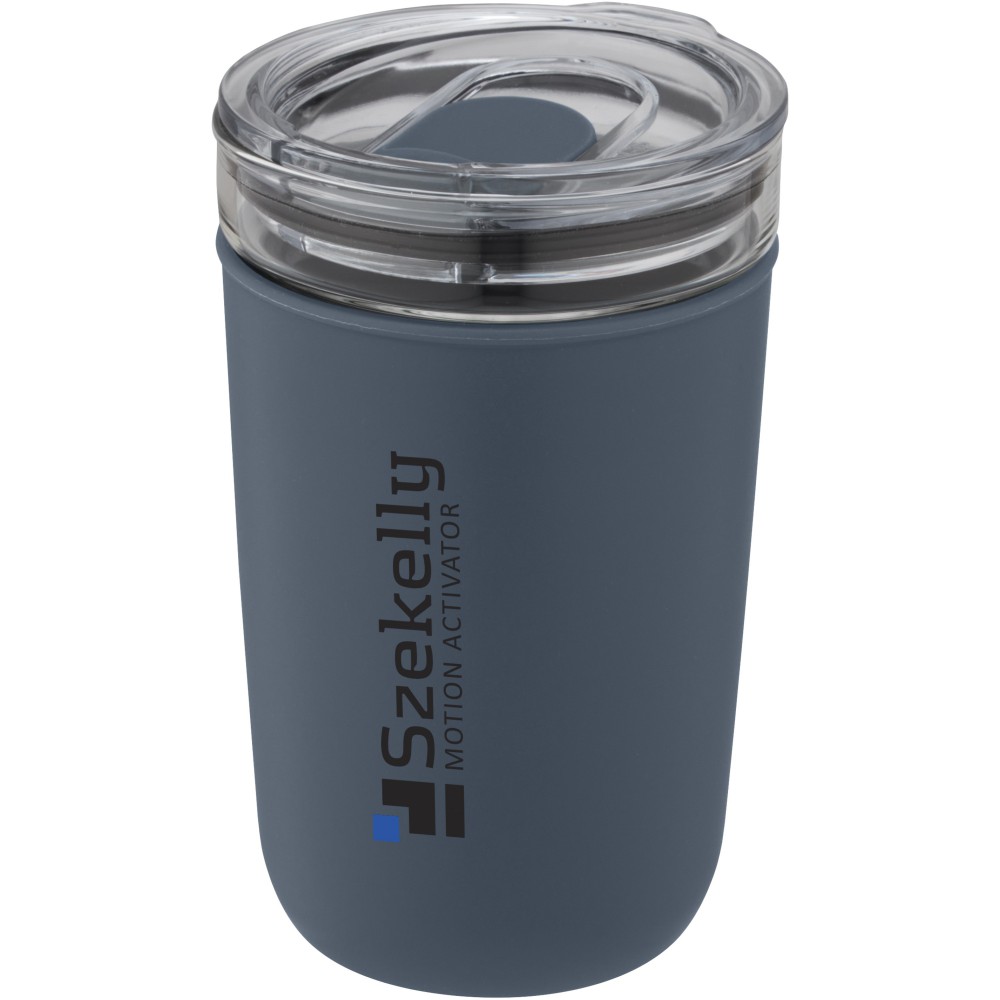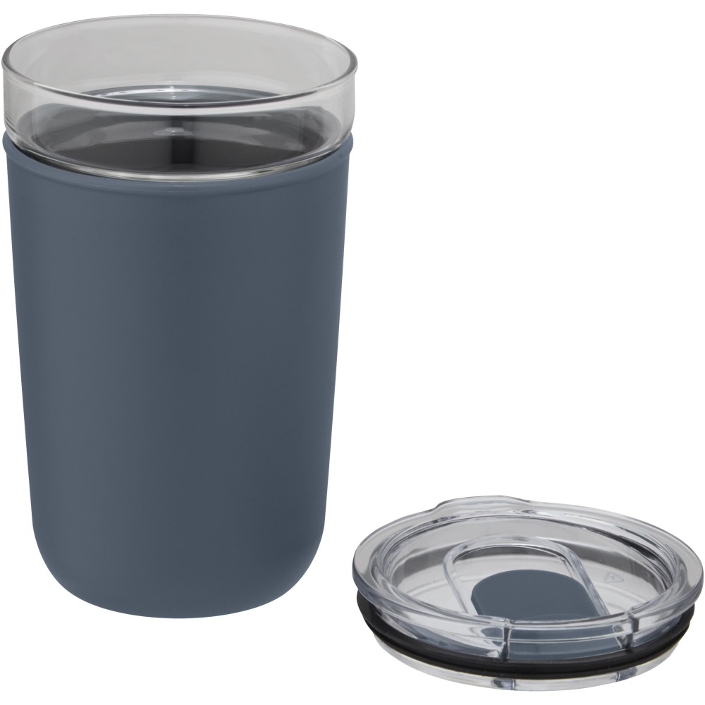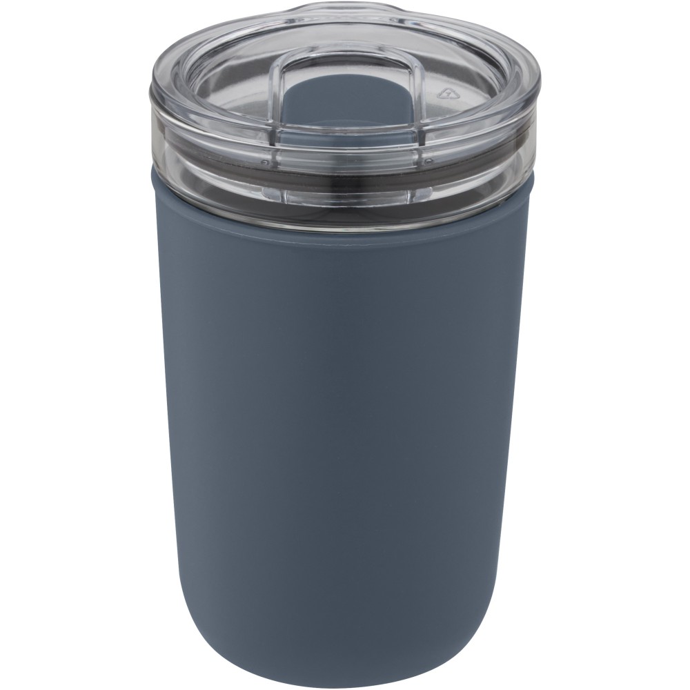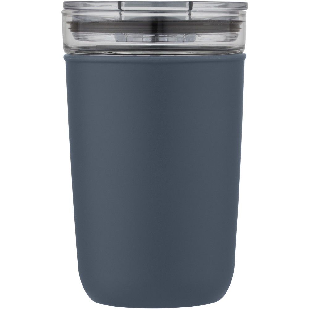 Újrahasznosított műanyag tokkal védett üvegpohár. A pohár 100%-ban tartós boroszilikát üvegből készült, amely megőrzi az ital frissességét, és nem tartalmaz semmilyen káros vegyszert. BPA-mentes, a német élelmiszerbiztonsági törvény (LFGB) szerint tesztelt és jóváhagyott. Ftaláttartalomra tesztelve és jóváhagyva a REACH előírásai szerint. A pohár a legtöbb kávéfőző alá illeszkedik. Nem szivárgásmentes. Szénsavas italokkal nem használható. Mosogatógépben mosható, de mikrohullámú sütőben történő melegítésre nem alkalmas. Űrtartalom: 420 ml. Újrahasznosított karton díszdobozban.