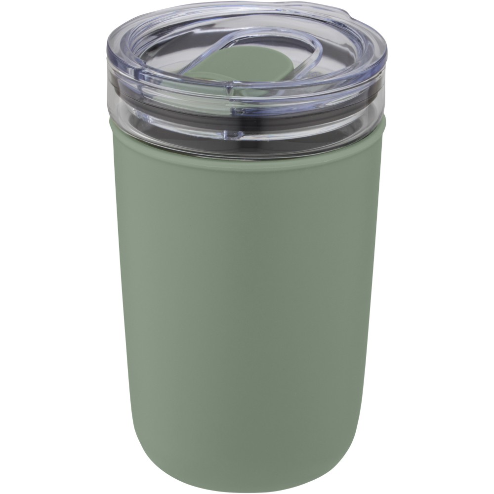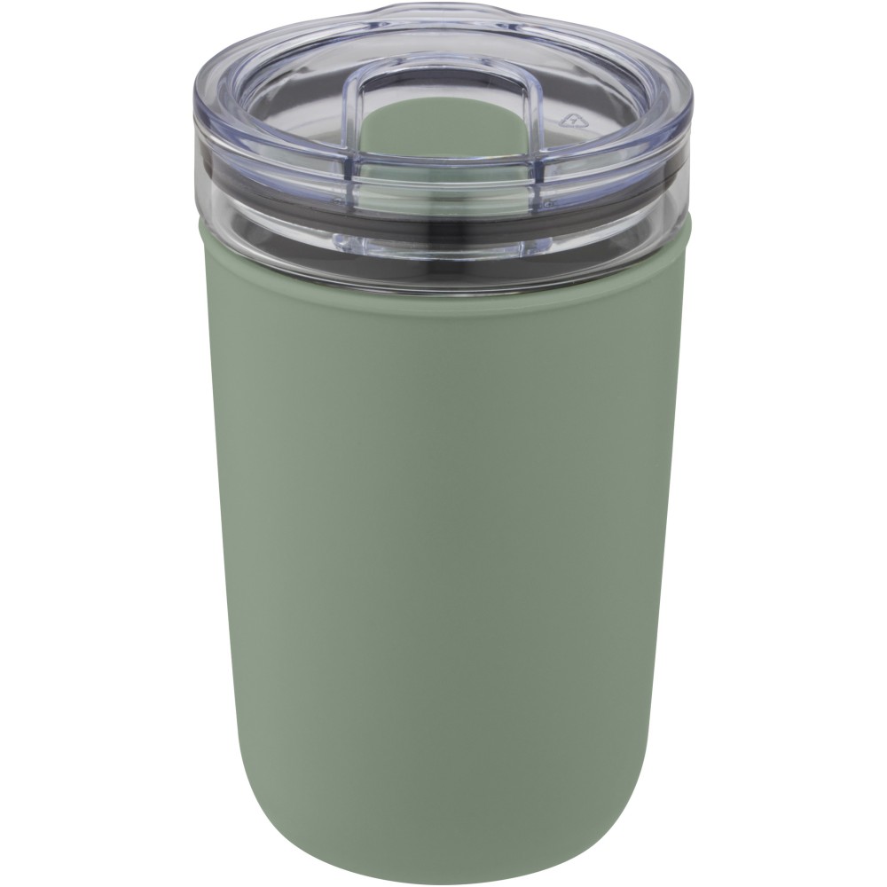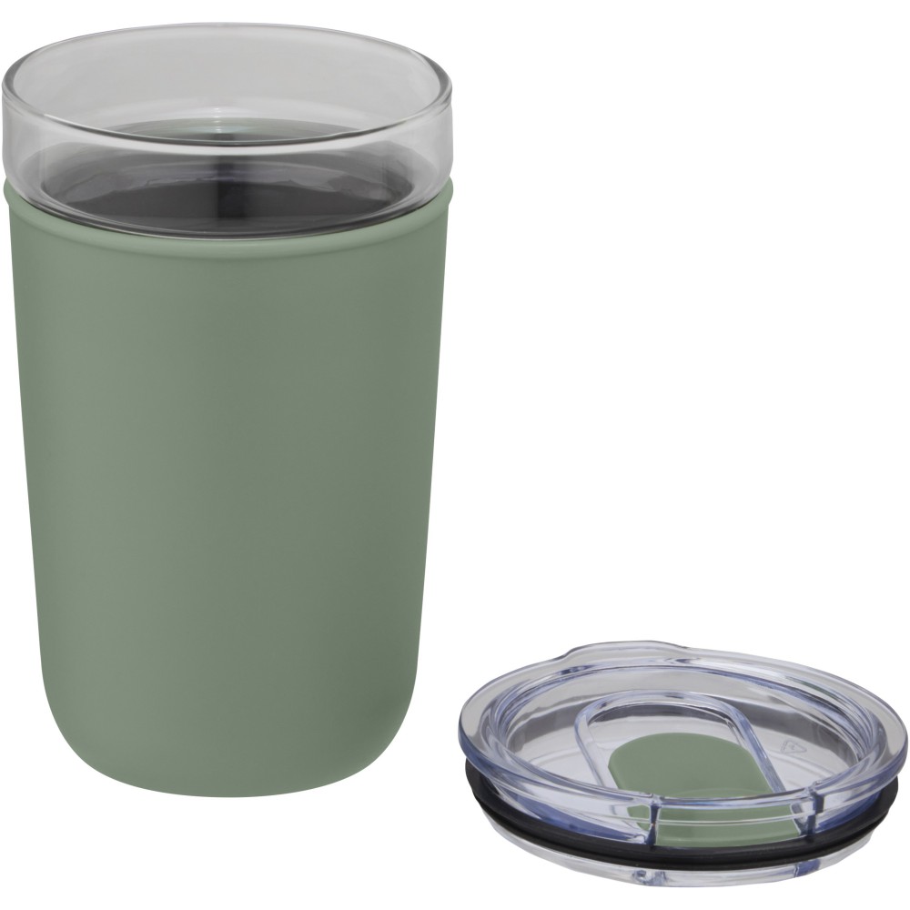 Újrahasznosított műanyag tokkal védett üvegpohár. A pohár 100%-ban tartós boroszilikát üvegből készült, amely megőrzi az ital frissességét, és nem tartalmaz semmilyen káros vegyszert. BPA-mentes, a német élelmiszerbiztonsági törvény (LFGB) szerint tesztelt és jóváhagyott. Ftaláttartalomra tesztelve és jóváhagyva a REACH előírásai szerint. A pohár a legtöbb kávéfőző alá illeszkedik. Nem szivárgásmentes. Szénsavas italokkal nem használható. Mosogatógépben mosható, de mikrohullámú sütőben történő melegítésre nem alkalmas. Űrtartalom: 420 ml. Újrahasznosított karton díszdobozban.