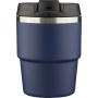Újrahasznosított rozsdamentes acélból készült, vákuumszigetelésű bögre (175 ml) duplafalú kialakítással és porfestett felülettel, PP csavaros fedéllel. A pohártesten lézergravírozott recycled (újrahasznosított) alapanyagra utaló logó található. Kompakt kialakítása miatt a legtöbb kávégépbe illeszkedik, darabonként barna kartondobozba csomagolva szállítjuk.