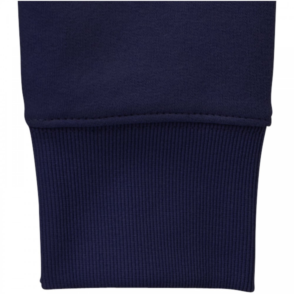 Normál szabásvonal. 2x2-es bordás ujj- és derékpasszé. 2x2-es bordás V-betét a nyaknál. Szatén szalagerősítés válltól vállig. Belül puha, bolyhos felület. Hátul tónusos logónyomat.80% pamut és 20% poliészter, belül bolyhos, kötött anyag. 300 g/m2.