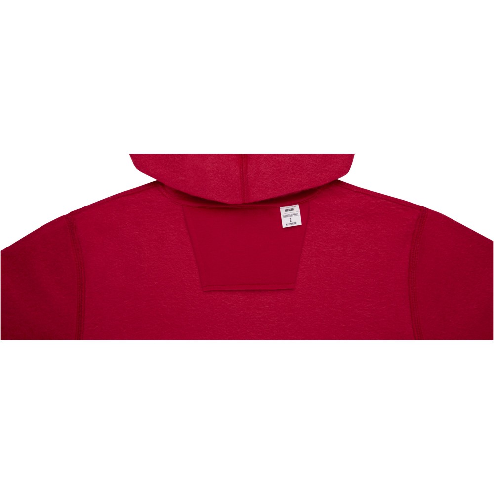Belső emblémázási lehetőség. Letéphető, kivágható címke. Zsinór a kapucniban. Kenguru zseb. Lapos kötésű bordás alsó szegély. Lapos kötésű bordás mandzsetta. Bolyhos belső felület. Saját anyagából készült nyakszalag. Kötött anyag 50% pamut és 50% poliészter, 240 g/m2.