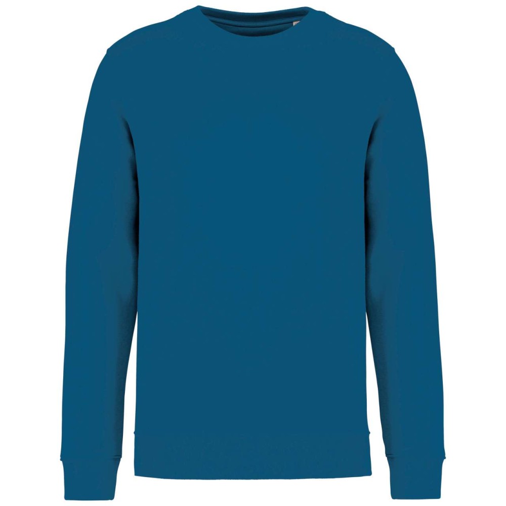 85 % bio, fésült pamutból és 15 % újrahasznosított poliészterből készült. Unisex. Egyenes szabás. LSF (Low Shrinkage Fleece: előzsugorított polár). Kerek nyakkivágás. Félhold alakú. Méretcímke organikus pamut és újrahasznosított poliészter logóval. 1x1 bordás nyakpasszé, alsó szegély és kézelő. Duplaöltés a kézelőn, karöltőben és kézelőn. Egyszeres felülvarrás a nyakkivágáson. Belső szalagozott nyakrész. A nyakrészen nincs márkajelzés, csak méretcímke a könnyebb dekorálás érdekében. A ruhadarabhoz kartonpapírból készült ismertetővel, amely felsorolja a felhasznált környezetbarát anyagokat. OEKO-TEX N CQ1007/7 STANDARD 100 tanúsítvánnyal rendelkezik. IFTH. 350 g/m2.