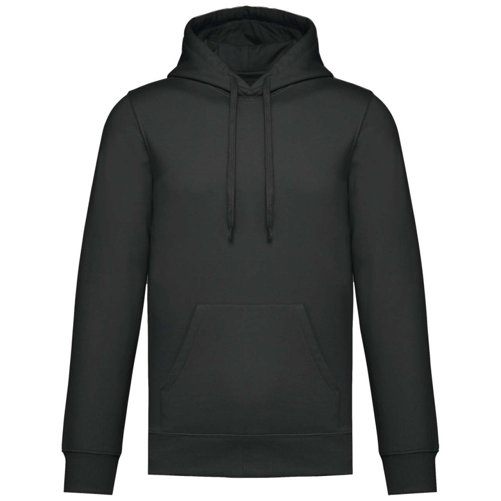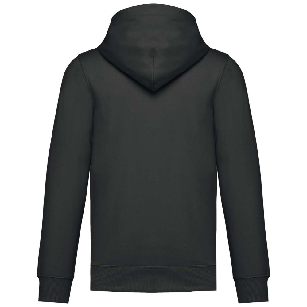 50% gyűrűs fonású pamut / 50% újrahasznosított poliészter, fésült pamut. Egyenes szabású, vágott és varrott. 1x1 bordás kötés a nyakkivágás, a mandzsetta és az alsó szegély jobb megjelenése érdekében. Kenguruzseb. Policotton dzsörzé bélésű kapucni lapos húzózsinórral. Színben illeszkedő dzsörzé szalagos belső a nyakkivágásnál. Csak méretcímke márkajelzés nélkül.