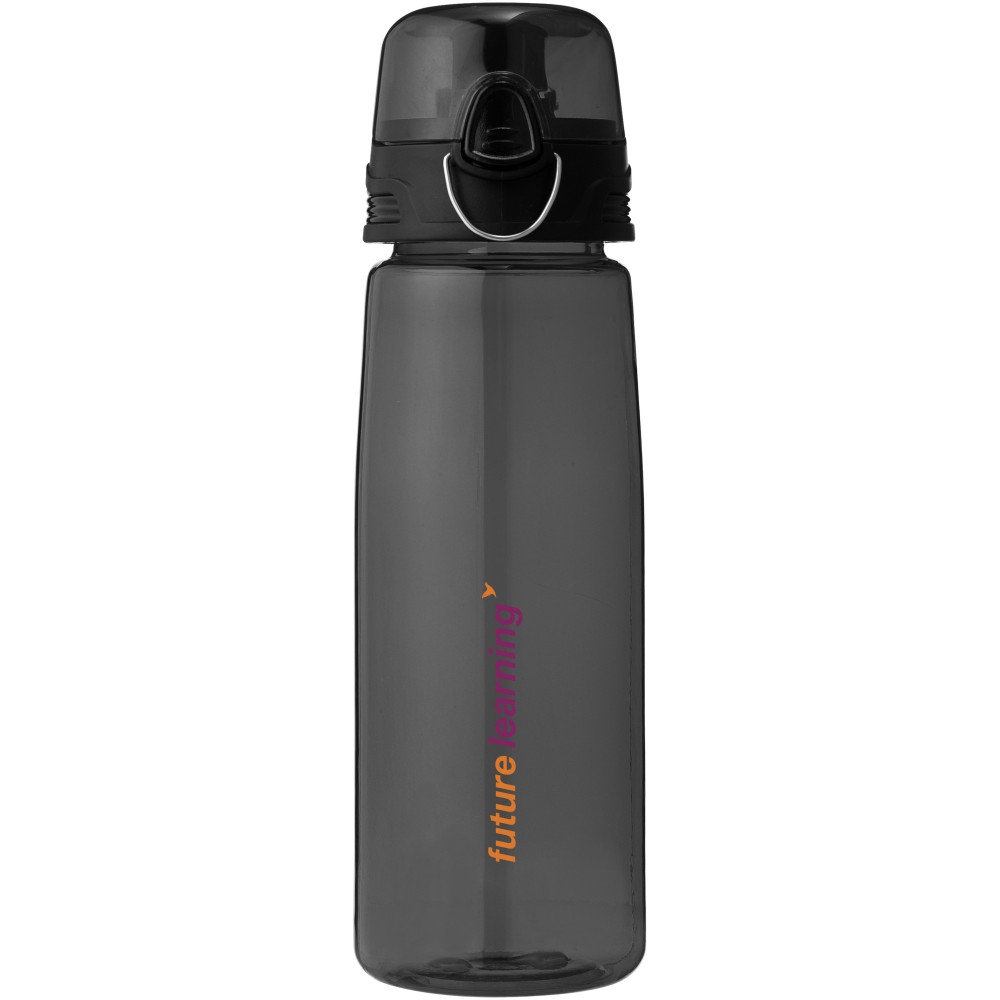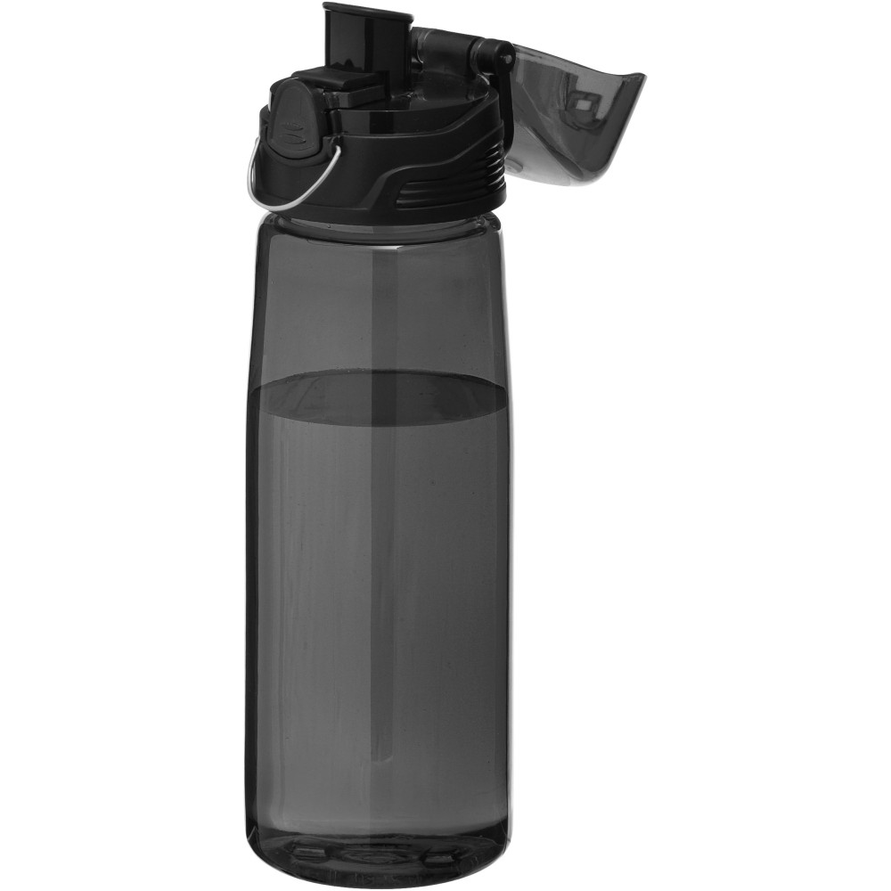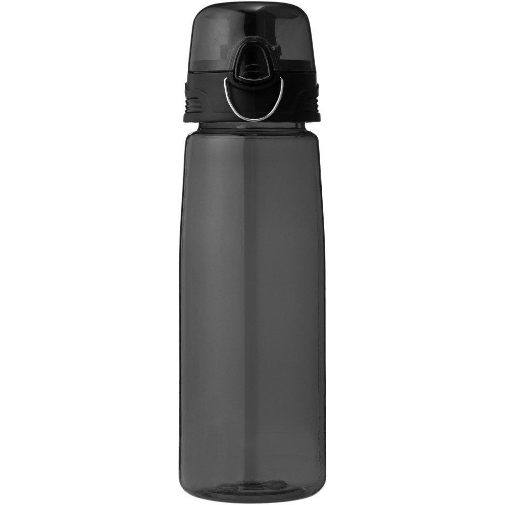 Nagy melegben a könnyű Capri sportpalack életmentő lehet. A palacknak felnyitható ivófedele van kifolyóval, így védve és tisztán tartja. A nyomógomb megkönnyíti a nyitást. Az átlátszó palack szilárd folt- és szagmentes Eastman Tritan anyagból készült, így tartós és BPA-mentes. Szivárgásmentes. Szénsavas italokkal nem használható. Mosogatógépben nem mosható és mikrohullámú sütőben történő melegítésre nem alkalmas. Űrtartalom: 700 ml.