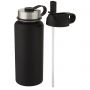 Kettő az egyben duplafalú, rozsdamentes acél sportpalack réz vákuumszigeteléssel, 2 fedéllel: egy szívószálas fedél és egy felcsavarható fedél hurokkal. A szigetelt 18/8-as rozsdamentes acél konstrukció megakadályozza a páralecsapódást a palack külső oldalán, a divatos matt bevonat pedig extra tartóssá teszi. Szélesen nyíló száj a könnyű feltöltéshez, kiöntéshez és tisztításhoz. BPA-mentes, a német élelmiszerbiztonsági törvény (LFGB) szerint tesztelt és jóváhagyott. Ftaláttartalomra tesztelve és jóváhagyva a REACH előírásai szerint. Jégkockákhoz tökéletes. Szivárgásmentes. Szénsavas italokkal nem használható. Mosogatógépben nem mosható és mikrohullámú sütőben történő melegítésre nem alkalmas. Nagy űrtartalmú palack: 1L. Újrahasznosított karton díszdobozban.