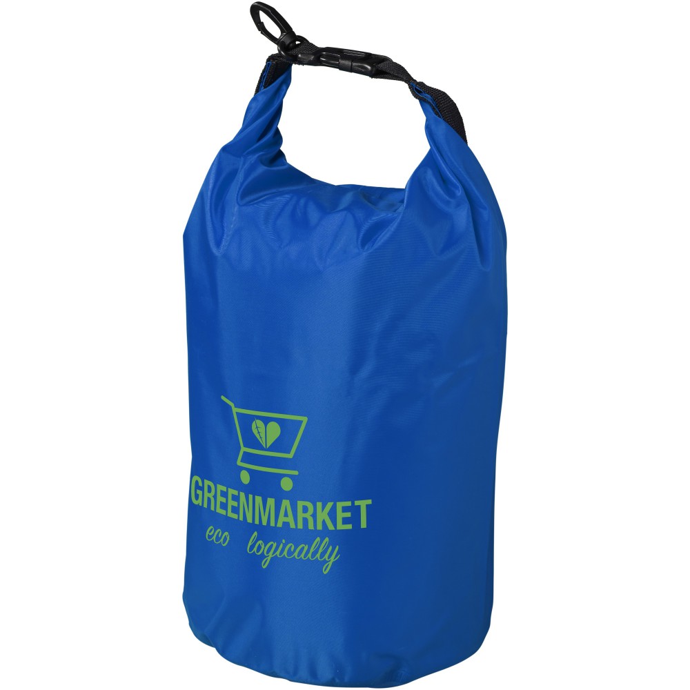 Vízálló táska, roll-top műanyag csatos záródással, hogy értékei biztonságban legyenek, és szárazon maradjanak. 190T polyester taft PVC hátsó résszel. Űrtartalom: 5 liter.