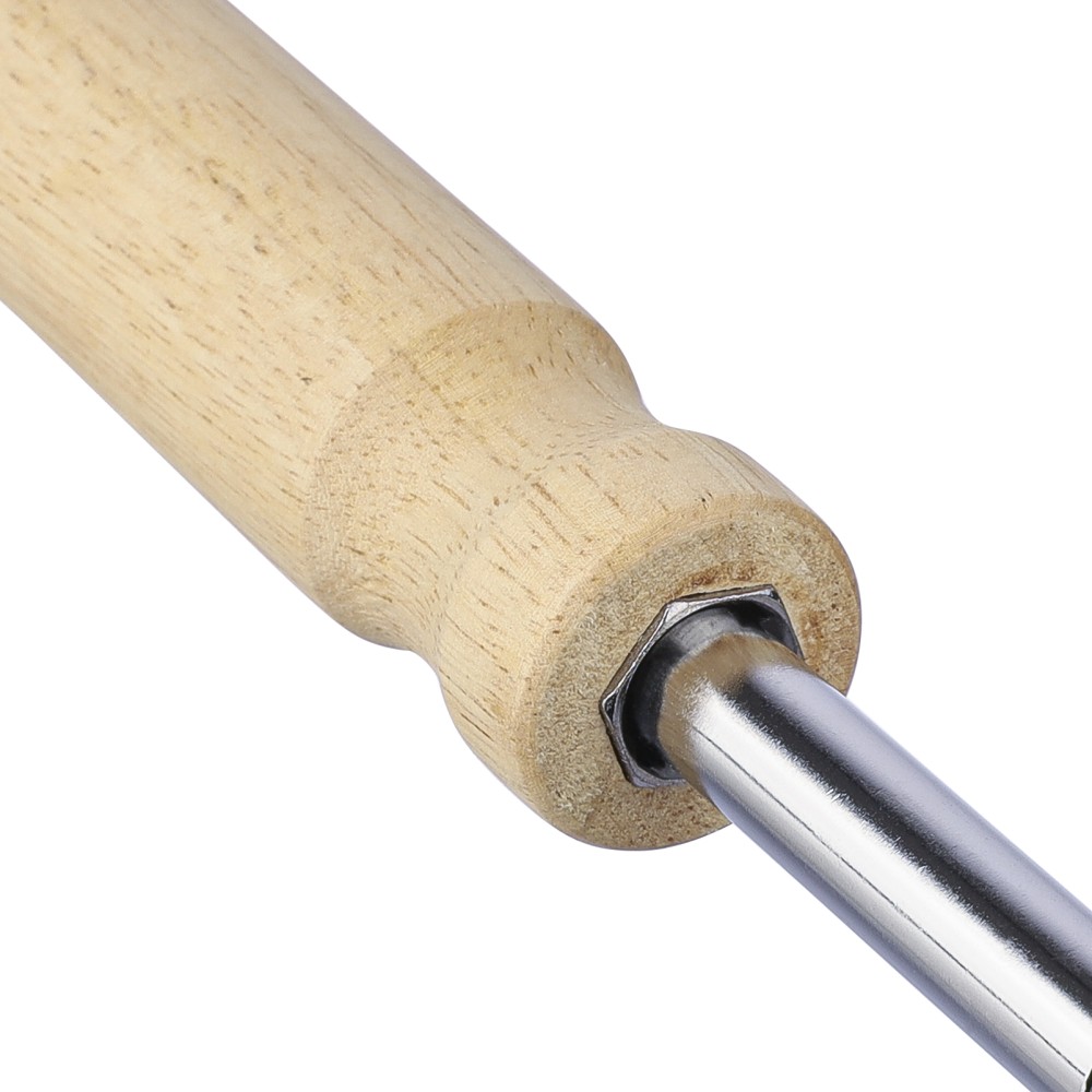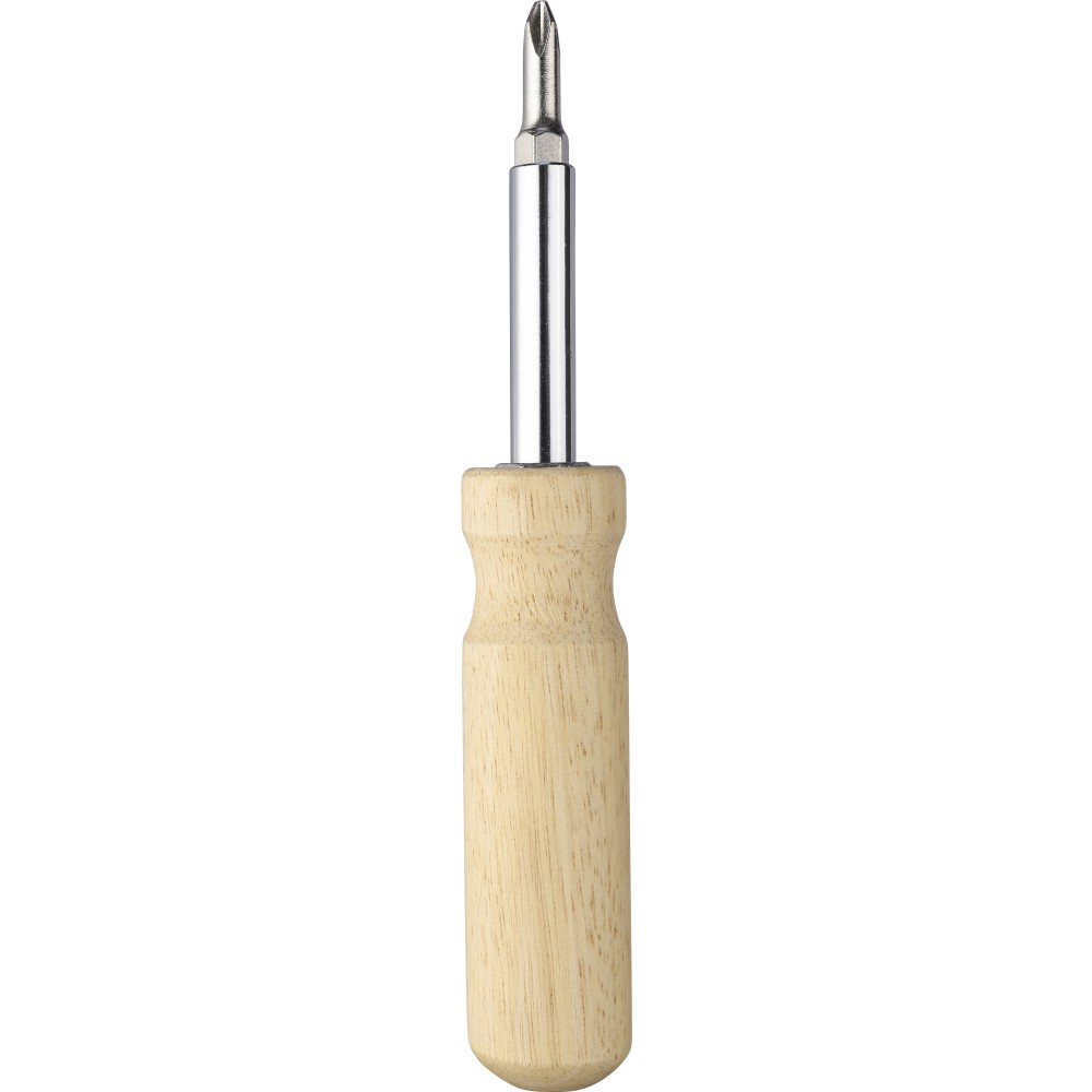 Kaucsukfa csavarhúzó készlet a nyélben tartható 4 db mágneses fejjel (2-2 db mindegyik kétoldalas hegyen). Praktikus és kompakt kialakítás cserélhető fejekkel és tartóval. Csomagolása barna papírdoboz.