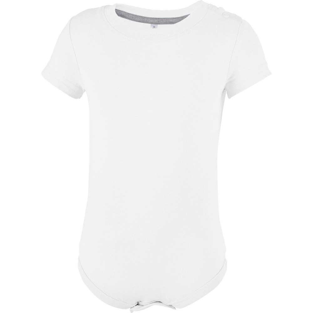 100% pamut, enzimmosott anyag extra puha tapintással. Vállán és a lábak között patentos záródás, bordás szegések a nyak- és lábvonalban. 180 g/m2. 3 hónapos kortól 24 hónapos méretig.