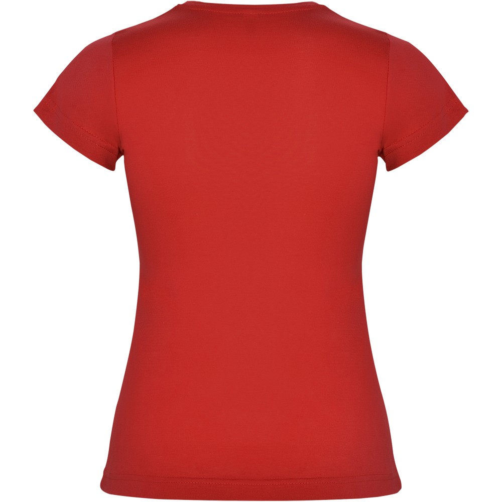 Rövidujjú, karcsúsított, oldalvarrott női póló. 1x1 dupla rétegű bordás nyak és válltól vállig tartó fedett varratok. 100% pamutból készült, 155 g/m2 súlyú, egyrétegű Jersey kötés.