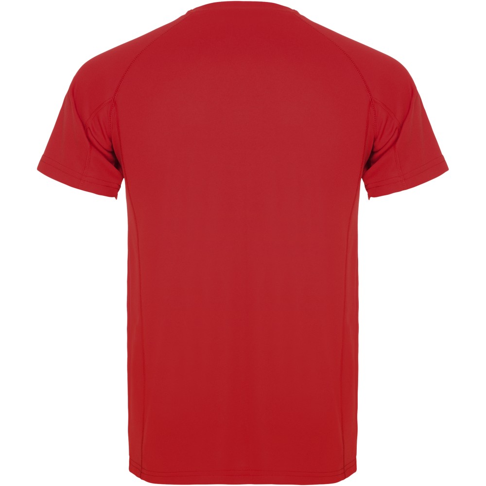 Rövidujjú technikai raglánujjú póló. Kerek nyak, fedett varrásokkal. Oldalsliccek. Könnyen mosható és szárítható, lélegző anyag. UV-védelem. Piqué 100% poliészterből, 150 g/m2.
