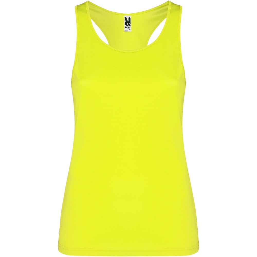 Technikai, légáteresztő, könnyen mosható és gyorsan száradó anyag. Bordázott karkivágások és nyakrész. Racerback kialakítás és oldalvarrások. Eltávolítható címke. 100% Polyester, 140 g/m2.