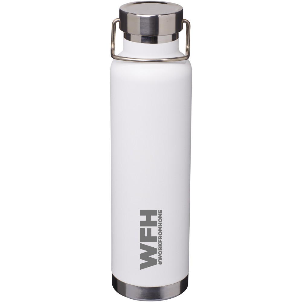 Thor duplafalú vákumos palack. Belső fala réz, ennek köszönhetően 48 órás hideg- és 12 órás melegtartási képességgel rendelkezik. Ez a kialakítás megakadályozza a kondenzációt a palack külső falán. A termoszhoz csavaros, rozsdamentes acél kupak tartozik. Széles kiöntő nyílással rendelkezik, amely akár jégkockák behelyezésére is alkalmas. Szivárgásmentes. Szénsavas italokkal nem használható. Mosogatógépben nem mosható és mikrohullámú sütőben történő melegítésre nem alkalmas. Űrtartalom: 650 ml. Csomagolása Avenue díszdoboz. Rozsdamentes acél.