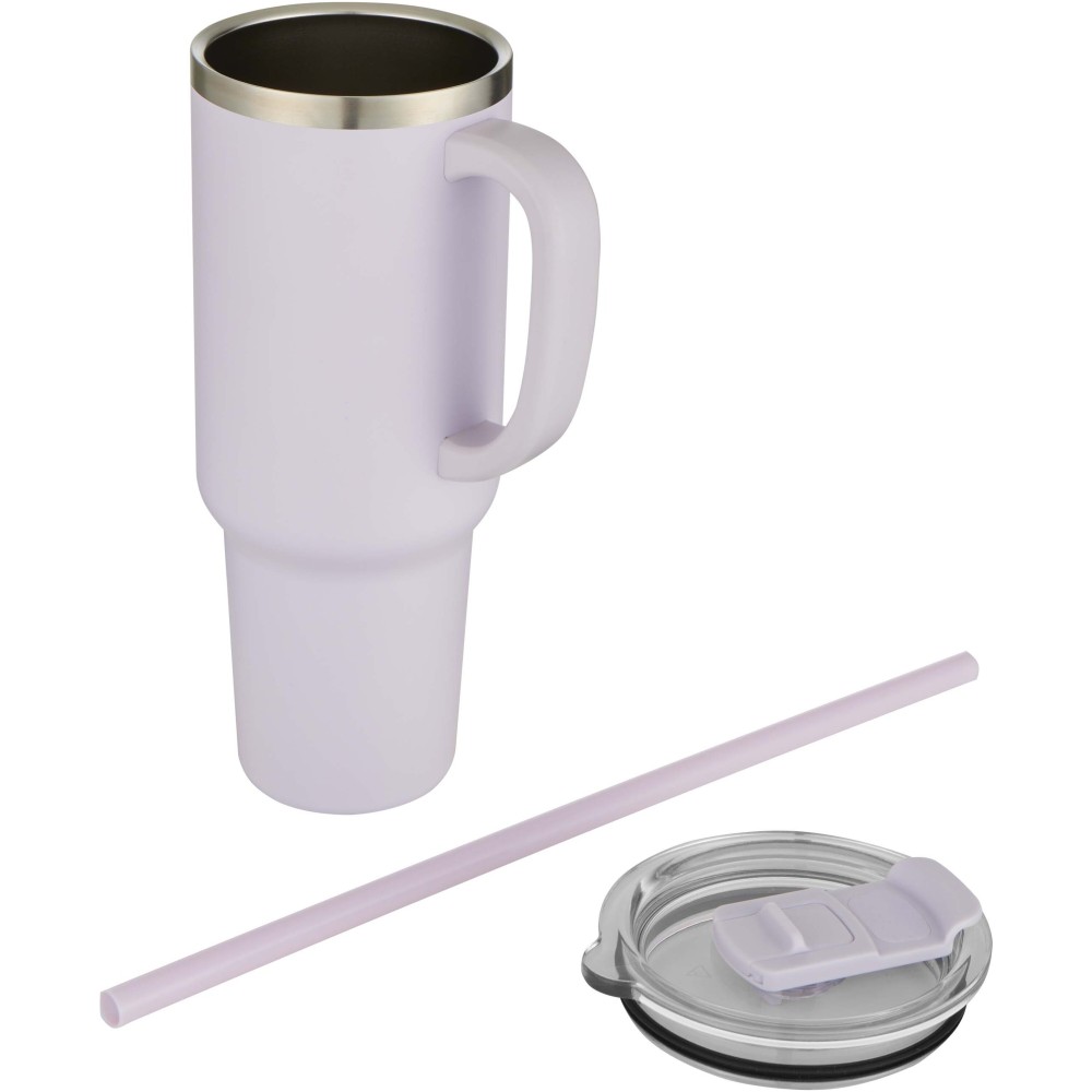 RCS tanúsítvánnyal rendelkező duplafalú rézvákuum szigetelésű pohár, amely 91%-ban használt rozsdamentes acélból készült és legalább 24 órán keresztül hidegen tartja az italokat. Tritan szívószállal rendelkezik, és csúsztatható fedél funkcióval van ellátva, amely megakadályozza a kiömlést. A 100%-ban újrahasznosított műanyag nyomófedél biztonságosan tartja a szívószálat a helyén, és könnyen forgatható, hogy hozzáférj az ivónyíláshoz. Tartós külső porfestett bevonat. Űrtartalom: 1200 ml. Kézi mosogatás javasolt. Stanley hasonmás.