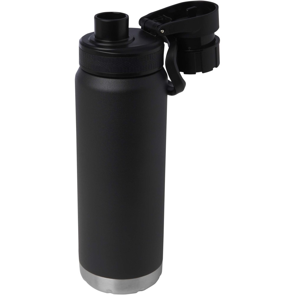 RCS tanúsítvánnyal rendelkező, rozsdamentes acélból készült, dupla falú, rézvákuum-szigetelésű kulacs csavaros, szivárgásmentes fedéllel. Széles nyílása megkönnyíti a töltést és a tisztítást, a fedélbe integrált hordozófül pedig praktikus szállítást biztosít. Szénsavas italokhoz is alkalmas. Külső felületén tartós porszórt bevonat található. Újrahasznosított karton díszdobozban kerül átadásra. Űrtartalom: 700 ml.