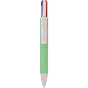 Újrahasznosított kartonból és szalmából készült négyszínű golyóstoll. Kb. 300 méter íráshossz színenként. Tollbetét színek: kék, fekete, piros és zöld.