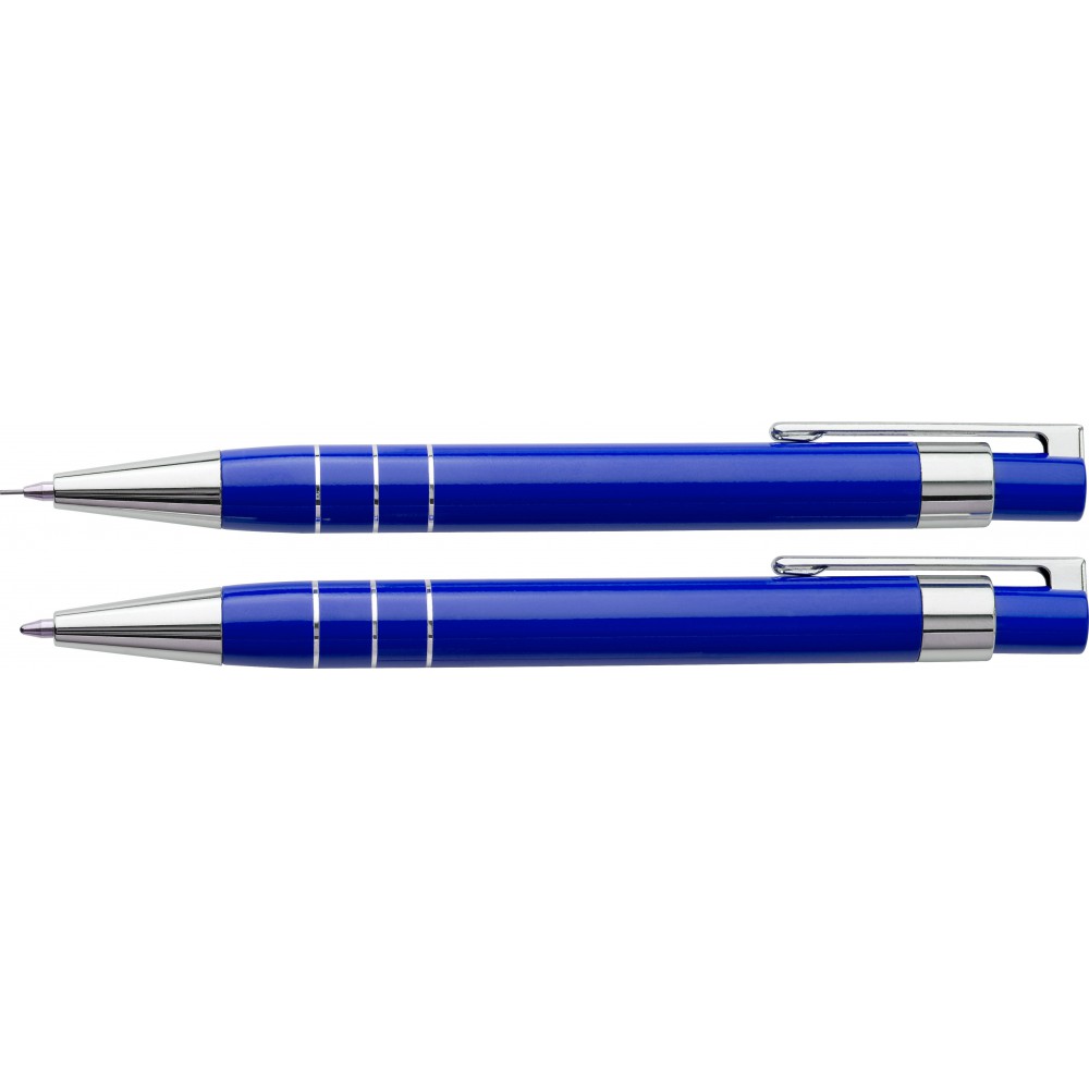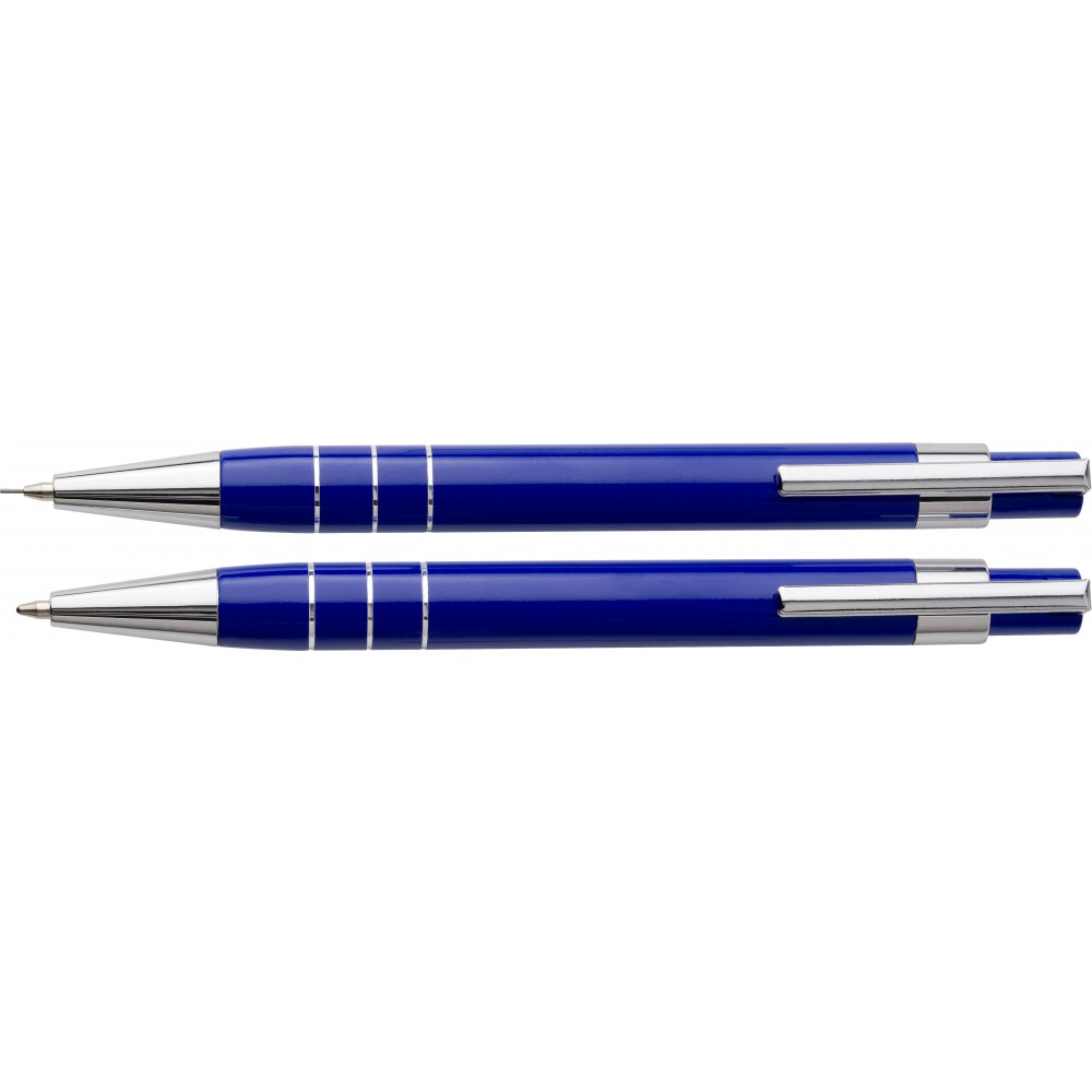 Műanyag tollkészlet. Tartalma: töltőceruza (0,7 mm) és golyóstoll fekete tollbetéttel, színben illeszkedő, mágneses záródású tolltartóban.