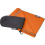 Ez a sporttörölköző nagyon jó nedvszívó, könnyű és gyorsan szárad. Ha a törölközőt összehajtjuk és gumiszalaggal rögzítjük, kis mérete miatt alkalmas edzőterembe, uszodába, vagy kempingezésre. A törölköző 130 x 80 cm méretű, 200 gr/m2-es újrahasznosított PET poliamidból készült, mosógépben 40°C-on mosható. Újrahasznosított PET műanyagból készült tároló tasakkal (20 x 8,5 cm) szállítjuk, amely remek helyet biztosít a logó nyomtatásához.
