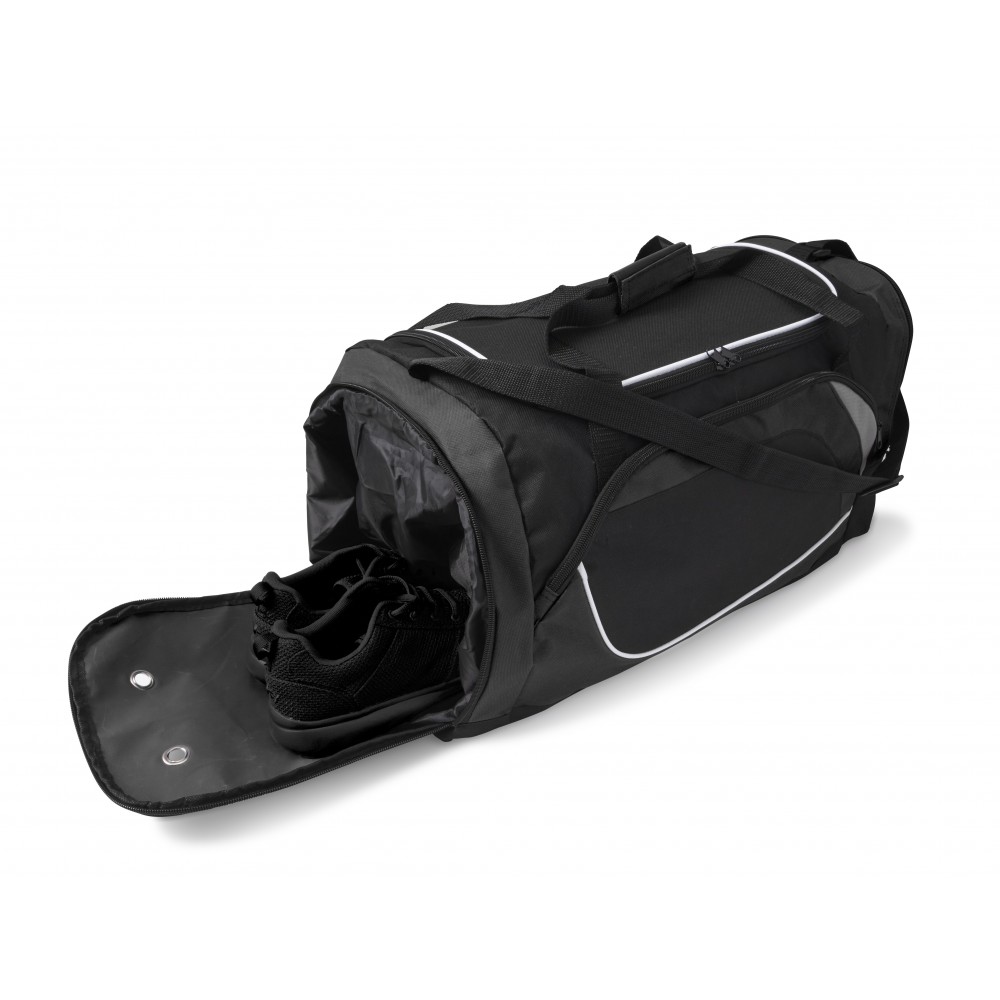 Sporttáska egy nagy főrésszel, egy oldalzsebbel és egy külön résszel a cipő számára. 600D poliészter.