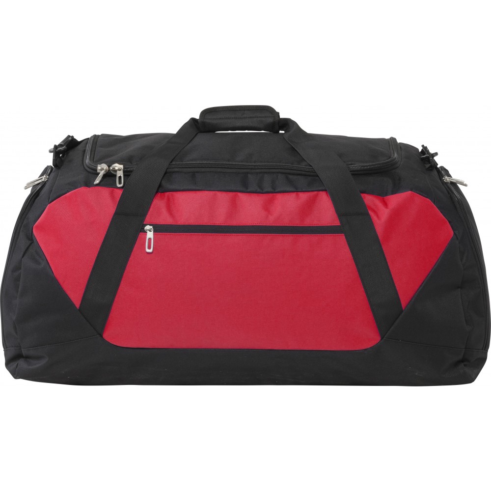 Nagy utazótáska nagy felső résszel, cipzáros első zsebbel, állítható vállpánttal. 600D poliészter.