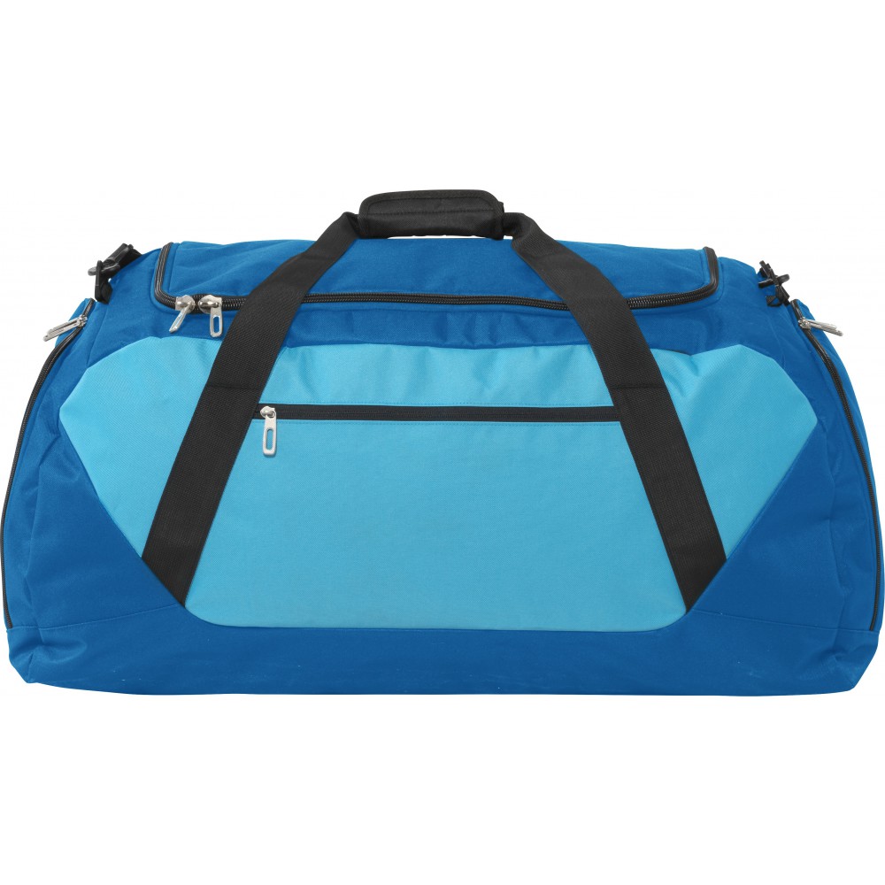 Nagy utazótáska nagy felső résszel, cipzáros első zsebbel, állítható vállpánttal. 600D poliészter.