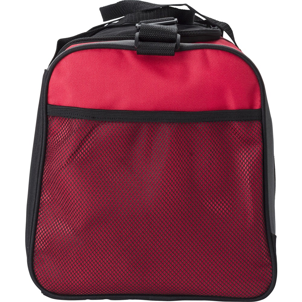 Sporttáska rövid fogantyúval és állítható vállpánttal. Egy nagy rekesz cipzárral, egy hálós zseb az oldalán, 3 elülső zseb. Megerősített alj. Poliészter 600D.