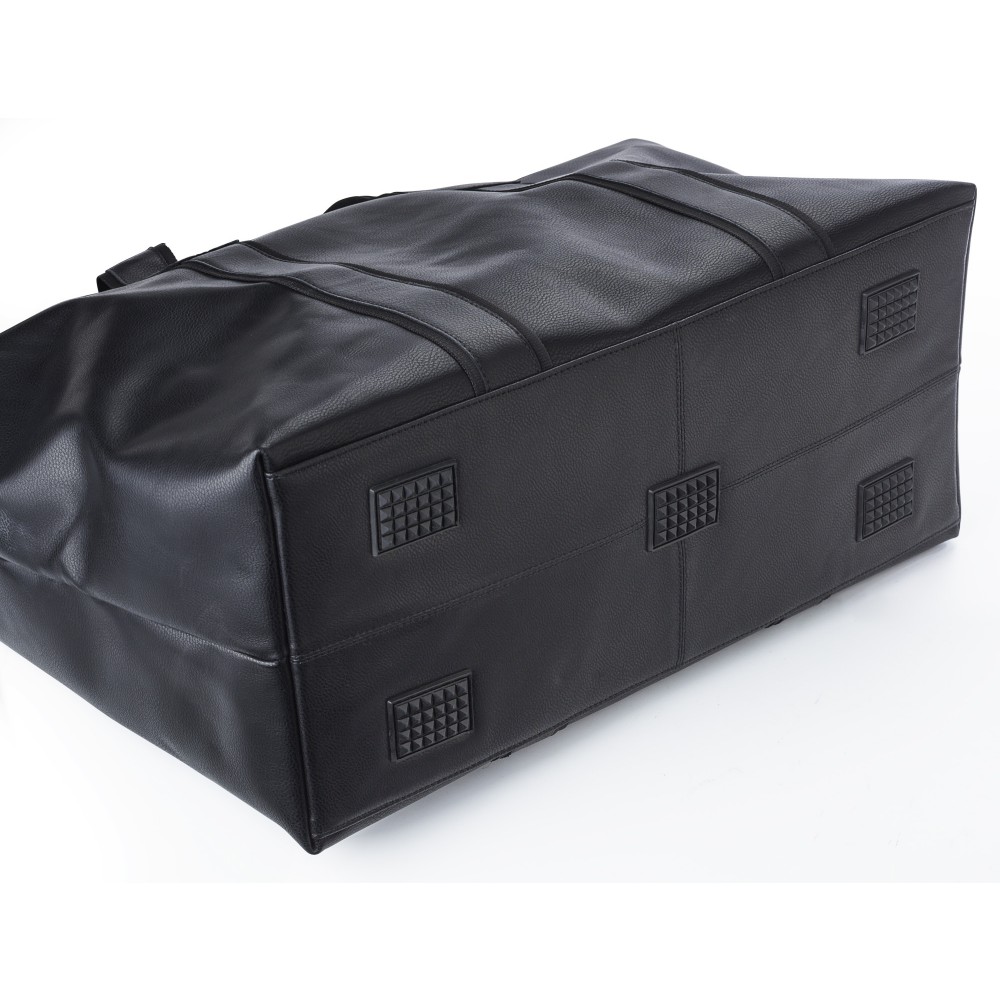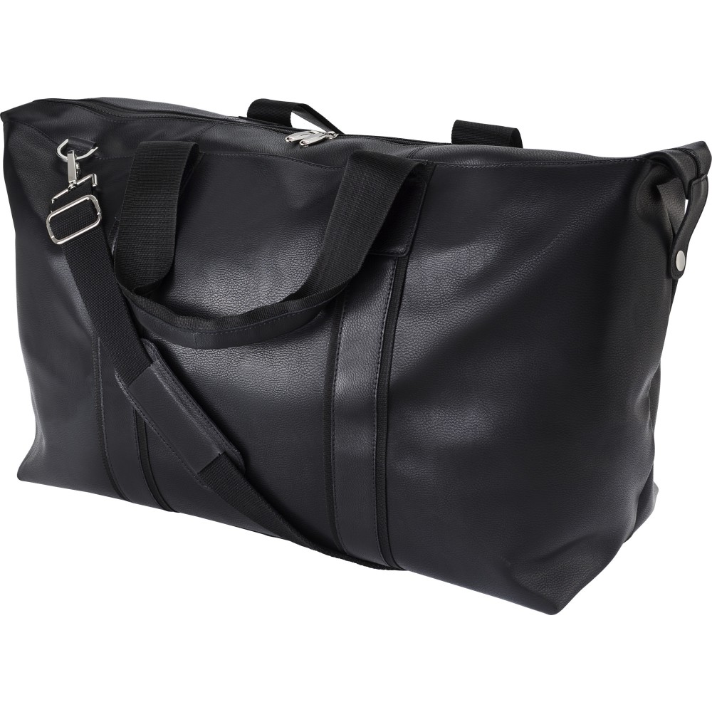 Bőr sporttáska cipzárral. Belsejében egy kis, cipzáras rekesz található. Két rövid fogantyúval és egy állítható vállpánttal.