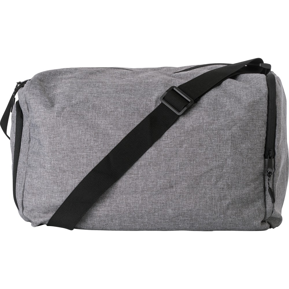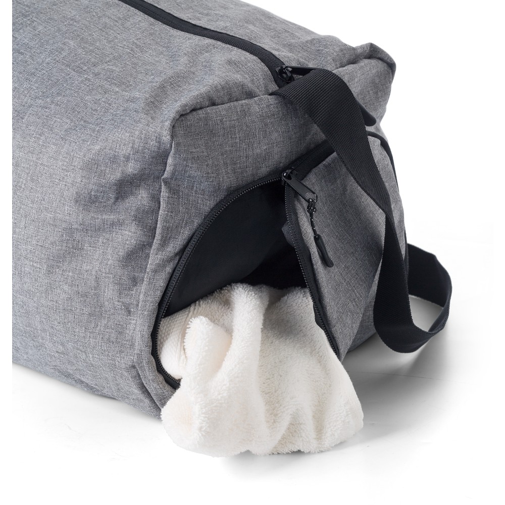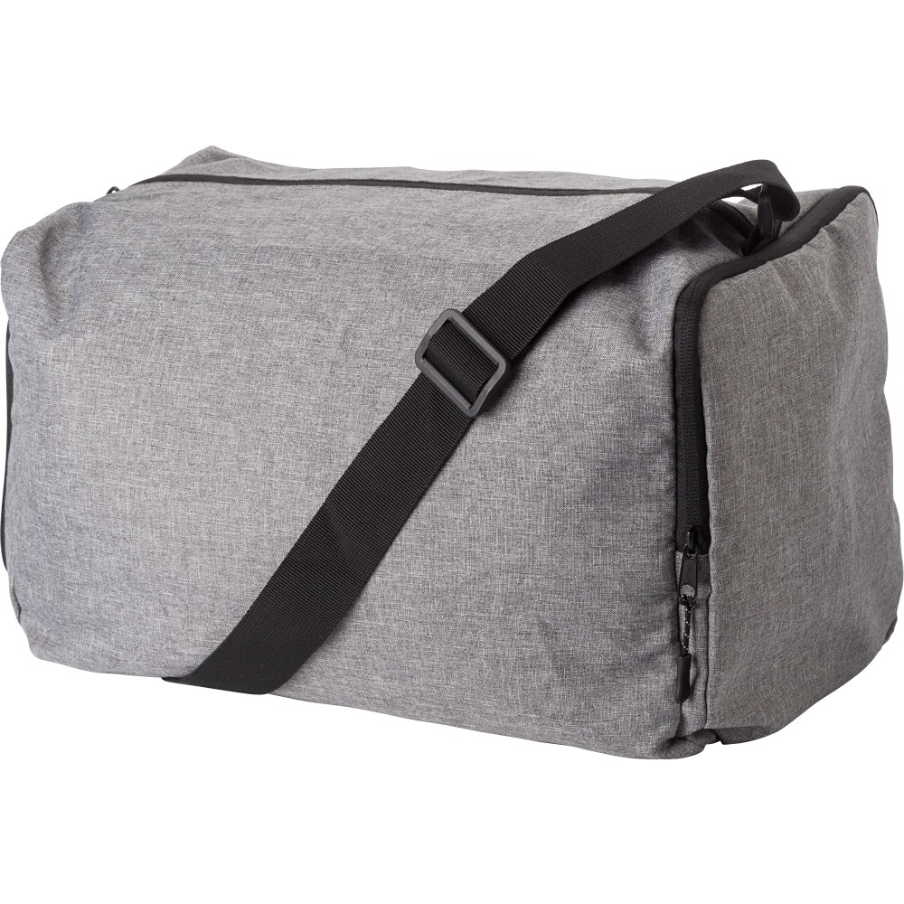 300D kéttónusú táska. Egy oldalsó zseb az összehajtáshoz és egy oldalzseb cipő számára. Összehajtogatva szállítjuk.