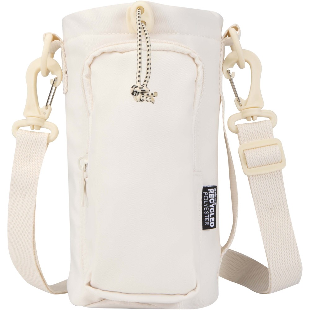 A Trip Aware® újrahasznosított utazó kulacstartó táska praktikus és könnyű megoldás a folyadékpótlás biztosítására útközben. Tartós 290D twill poliészterből készült, kötött hátoldallal és RPET 210D/PU béléssel, így egyszerre nyújt tartósságot és átgondolt kialakítást. Fő rekesze húzózsinórral záródik, és alkalmas mind nagyobb, füllel ellátott, mind kisebb palackok tárolására, a hátsó nyílás pedig könnyű hozzáférést biztosít. Elülső zsebében elférnek az alapvető holmik, például a telefon, ezen belül belső nyitott zseb és szalag a kulcsok rögzítéséhez. Az állítható pánt és az oldalsó fogantyú rugalmas hordozási lehetőségeket kínál. Minden táska Aware® nyomkövetővel érkezik, amely QR-kód segítségével lehetővé teszi a termék eredetének és útjának nyomon követését, növelve az ellátási lánc átláthatóságát és a kapcsolatot a termék gyártási folyamatával. Űrtartalom: 2 liter.