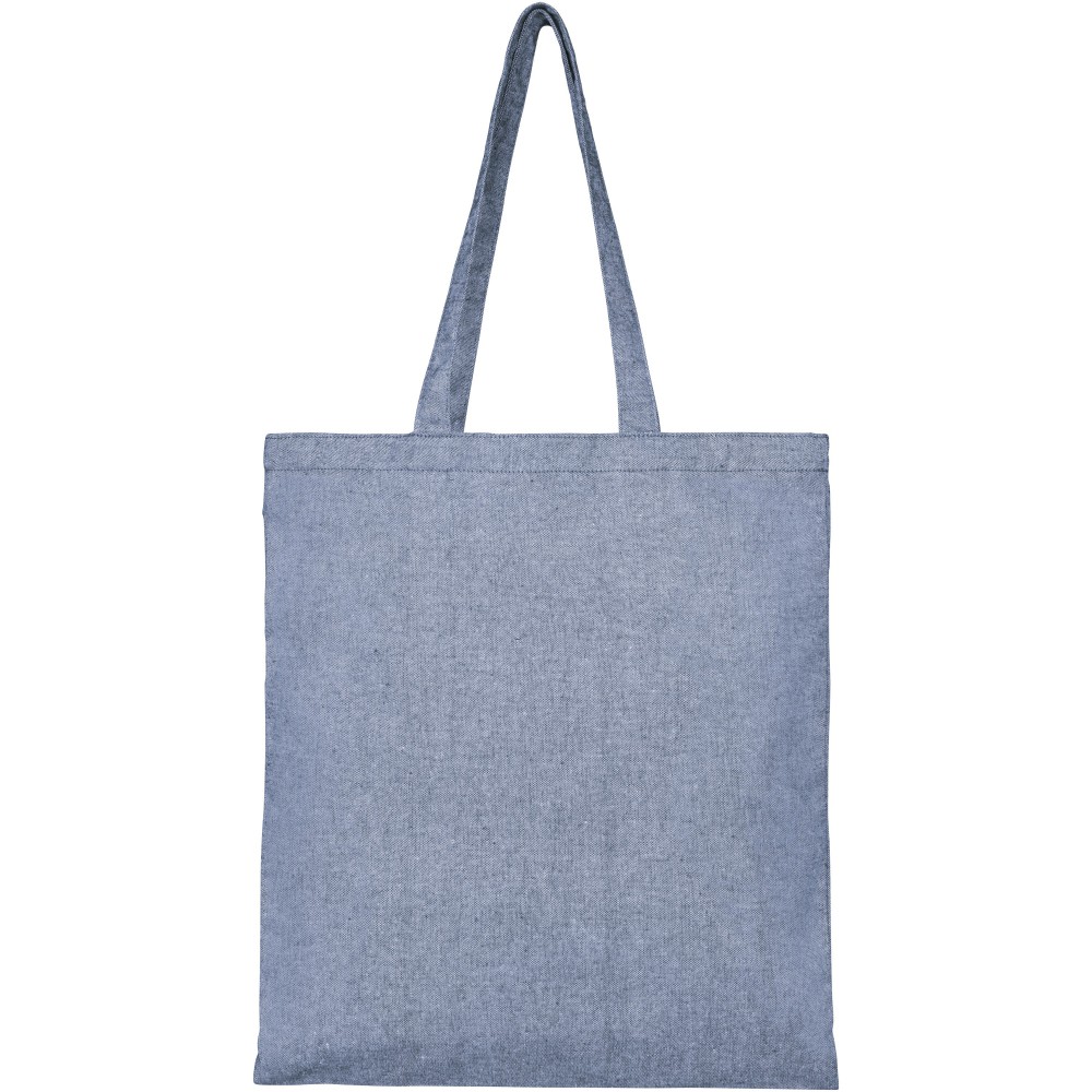 Bevásárlótáska 210 g / m2 újrahasznosított pamut poliészter keverékből. Az újrahasznosított pamut textilipari szabászati hulladékból ered. Az újrahasznosított anyag természetéből fakadóan kisebb eltérések lehetnek a színben. Fülmagasság 31 cm. Újrahasznosított pamut, 210 g/m2, újrahasznosított poliészter.