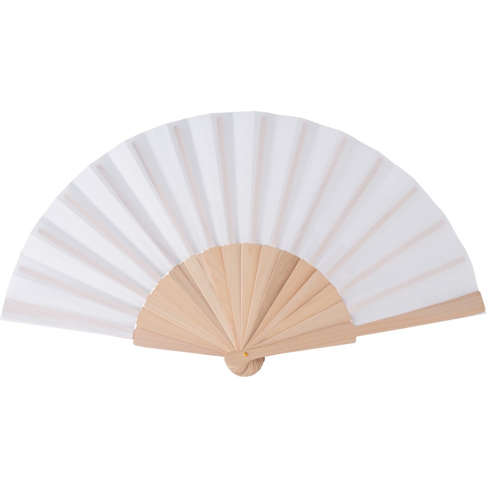 Legyező fa vázzal és RPET vászonnal. Egyenként barna kartondobozba csomagolva érkezik.