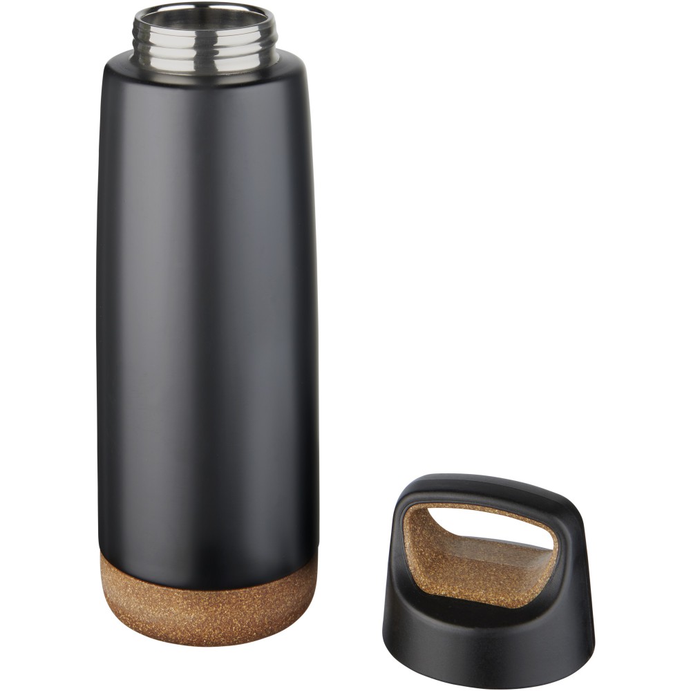 Duplafalú sportpalack réz-vákuumos szigeteléssel. Hidegtartó képesség 48 óra, melegtartó képesség 12 óra. A duplafalas kialakításnak köszönhetően nincs párakicsapódás. Csavaros fedél parafa berakással. Szivárgásmentes. Szénsavas italokkal nem használható. Mosogatógépben nem mosható és mikrohullámú sütőben történő melegítésre nem alkalmas. Űrtartalom: 600 ml. Csomagolása Avenue díszdoboz. Rozsadamestes acél és parafa.
