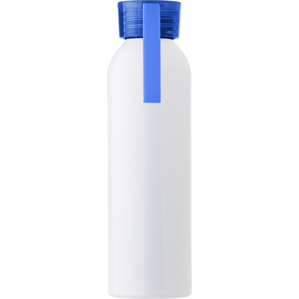 Fényes felületű palack színes kupakkal és szilikon pánttal. Csak hideg víz tárolására alkalmas. Nem szivárgásmentes. Mosogatógépben nem tisztítható. PS műanyag és alumínium. Űrtartalom: 650 ml.